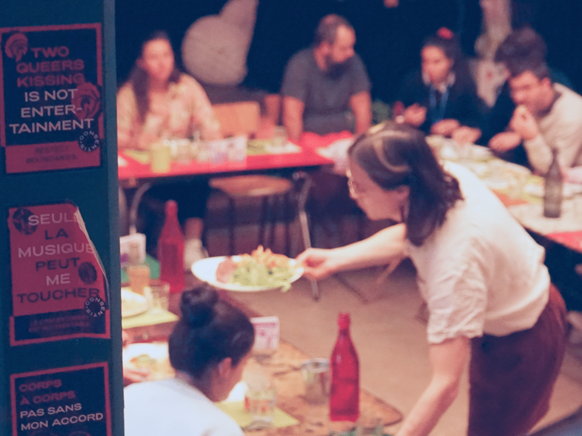 Pauline au service et aux petits oignons, te laissera le choix entre une place en terrasse sous le grand murier platane et une table sur la scène ou la salle de concert.